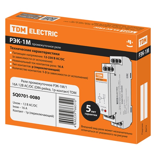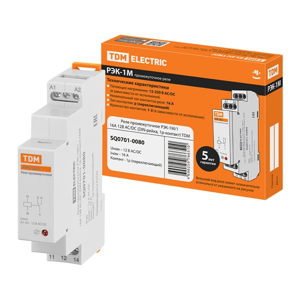 SQ0701-0080 Реле промежуточное TDM РЭК-1М/1 16А 1НО/НЗ 12В АС/DC