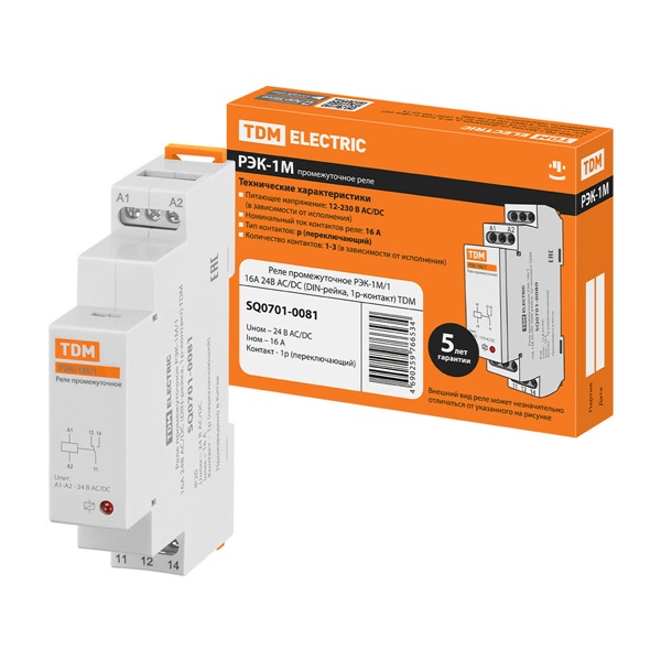 SQ0701-0081 Реле промежуточное TDM РЭК-1М/1 16А 1НО/НЗ 24В АС/DC