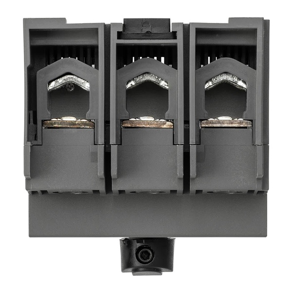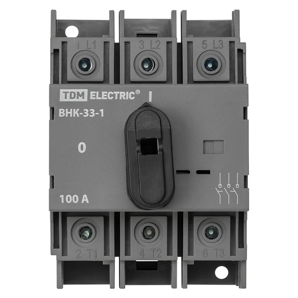 Трёхполюсный рубильник серии ВНК-33 предназначен для ручного коммутационного управления электрическими цепями переменного тока до 660 В и номинального тока до 630 А. Оснащён фронтальной ручкой управления, установленной на корпусе устройства, что обеспечивает удобство эксплуатации и безопасность при переключении.