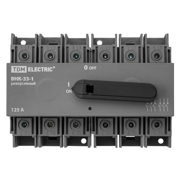Рубильник TDM ВНК-33-1 3П 125А реверсивный с установленной фронтальной ручкой управления (выключатель нагрузки)