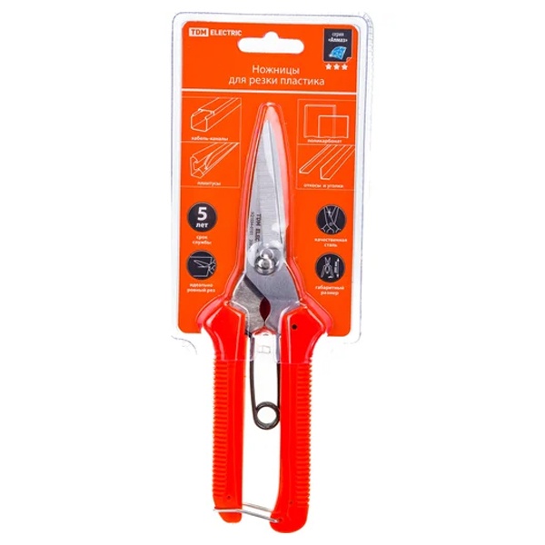 Назначение:Выполнение точных разрезов изделий из пластика (кабель-каналов, плинтусов, пластиковых покрытий и пр.) и поликарбоната. Преимущества:Высокая точность реза. Удобные нескользящие рукоятки. Качественная сталь режущих частей. Петля фиксации рукояток в закрытом виде для удобства транспортировки и защиты лезвий. Материалы:Пластик Нержавеющая сталь.