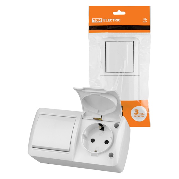 Компактный и надежный блок "Селигер" сочетает в себе одноклавишный выключатель и розетку с заземляющим контактом. Идеальное решение для установки в помещениях с повышенной влажностью или пылью: на балконах, в гаражах, мастерских, подсобных и технических помещениях, а также на дачах.