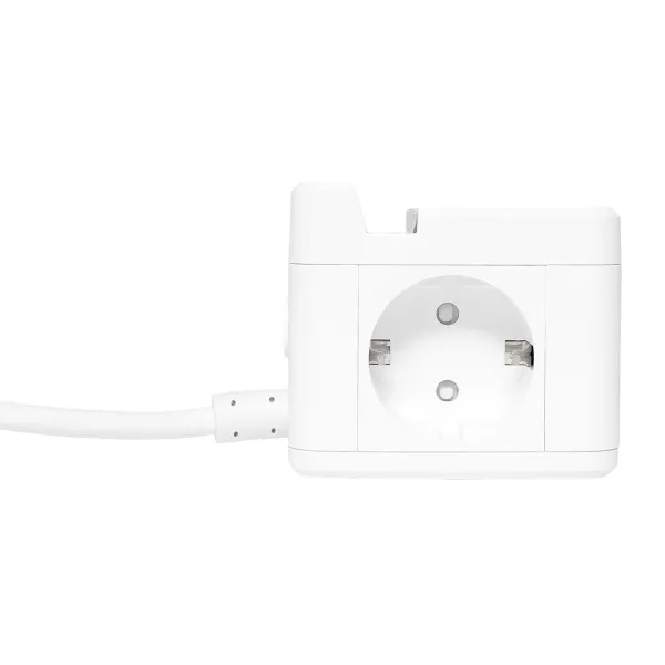 Кабель длиной 1,3 метра изготовлен из прочных материалов и имеет сечение 1 мм2, что обеспечивает достаточную пропускную способность для питания большинства современных устройств. При этом длина шнура оптимальна для настольного размещения и использования в ограниченном пространстве, таких как прикроватные тумбочки, рабочие столы или кухни. Устройство выполнено в компактном форм-факторе в виде куба, что не только экономит место, но и делает его стильным элементом интерьера.