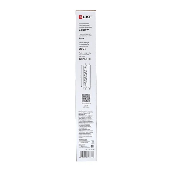 Удлинитель LUX с пятью розетками, двумя USB-портами и двумя разъёмами Type-C — это многофункциональное и современное решение для организации электропитания в доме, офисе или на даче. Он оснащён кабелем длиной 1,5 метра. Все розетки рассчитаны на стандартное напряжение 220–250 В и выдерживают нагрузку до 16 А, что делает устройство совместимым с большинством бытовых и офисных электроприборов, включая компьютеры, телевизоры, бытовую технику и зарядные устройства.