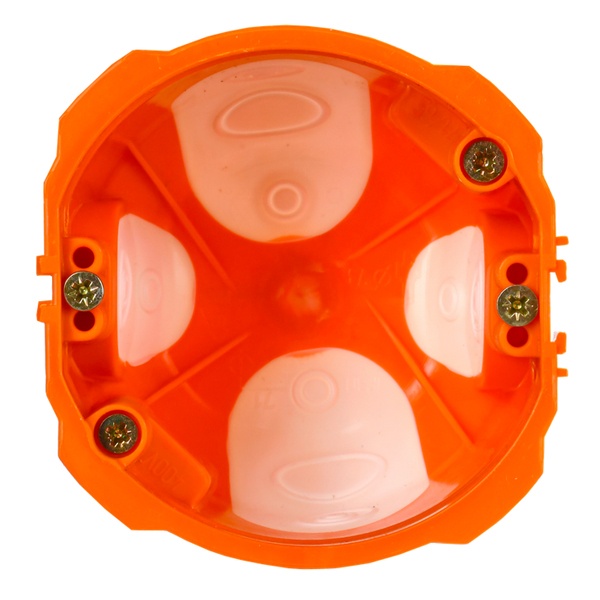 Удобная система монтажа с распорными лапками и винтовой фиксацией позволяет быстро и надёжно закрепить коробку в стене без необходимости применения дополнительных инструментов.