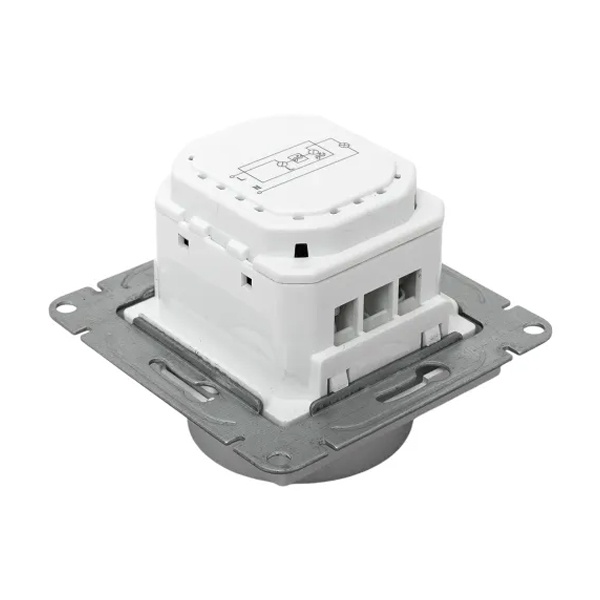 Корпус устройства выполнен из прочного пластика, устойчивого к ультрафиолетовому излучению, что обеспечивает долговечность цвета и материала даже при длительном воздействии солнечного света. Надёжный механизм диммера совместим как с медной, так и с алюминиевой электропроводкой, что делает его универсальным при установке в различных типах зданий.
