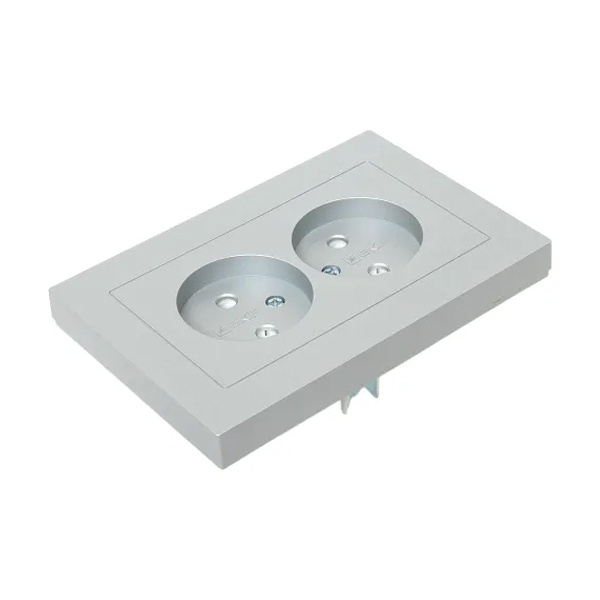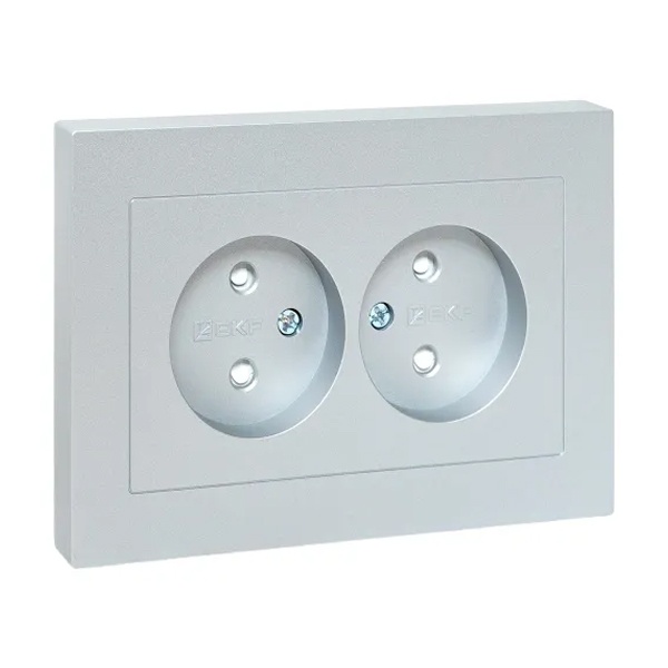 Электрическая двойная двухполюсная розетка, шторки, скрытой установки в одну монтажную коробку, алюминиевого цвета, винтовое подключение ЕКФ Эпика UP1-SOA-201