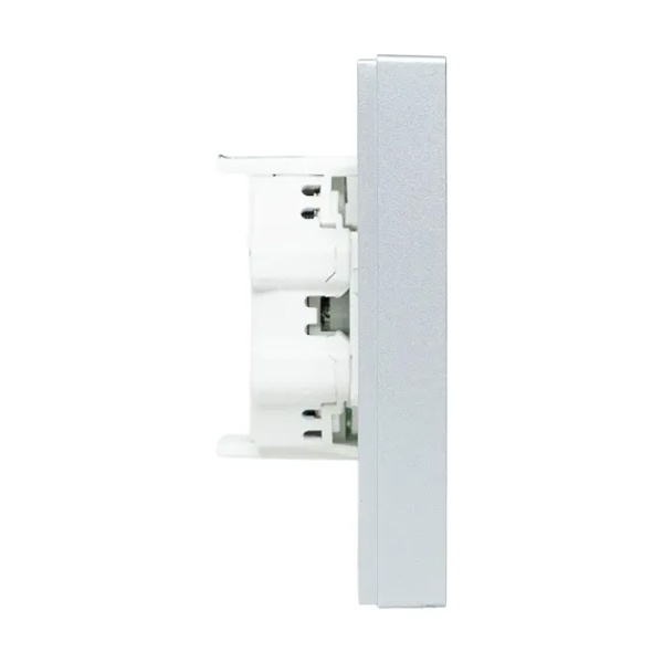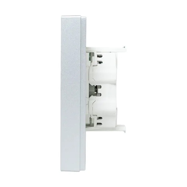 Розетка комплектуется декоративной рамкой в соответствующем цвете, что позволяет легко вписать её в интерьер помещения. Устройство полностью готово к установке и отличается простым, интуитивно понятным монтажом.