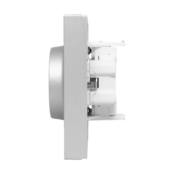 Розетка комплектуется декоративной рамкой в соответствующем цвете, что позволяет легко вписать её в интерьер помещения. Устройство полностью готово к установке и отличается простым, интуитивно понятным монтажом.