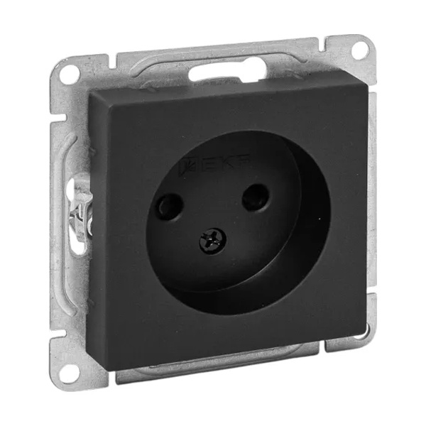 Электрическая двухполюсная розетка со шторками, скрытой установки черного цвета, винтовое подключение ЕКФ Эпика UP1-SOB-101