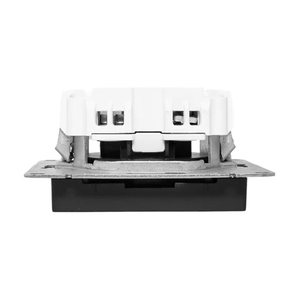 Универсальный механизм розетки совместим как с медной, так и с алюминиевой проводкой, обеспечивая надежное соединение и безопасную эксплуатацию.