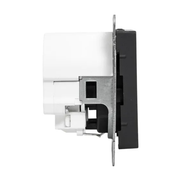 Электрическая розетка с заземляющим контактом, шторками и USB портами скрытой установки черного цвета, винтовое подключение ЕКФ Эпика UP1-SOB-111-2USBC