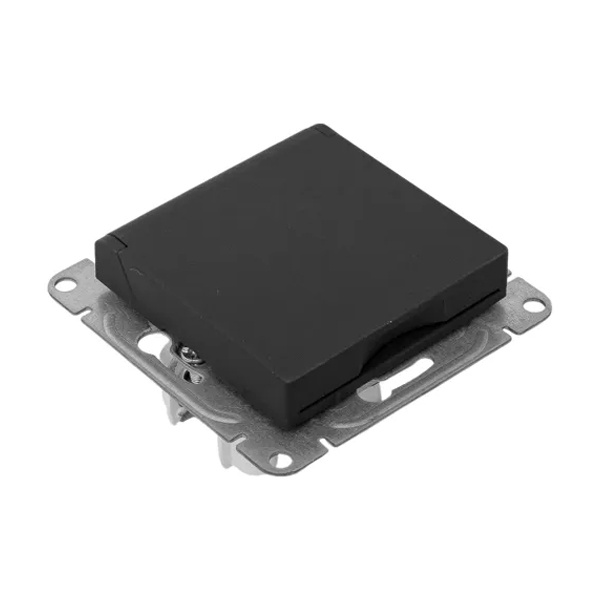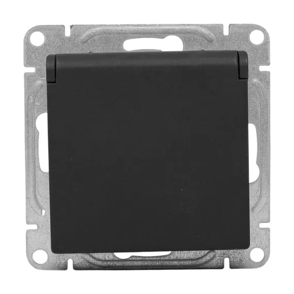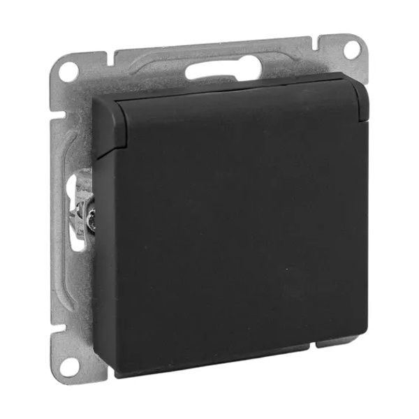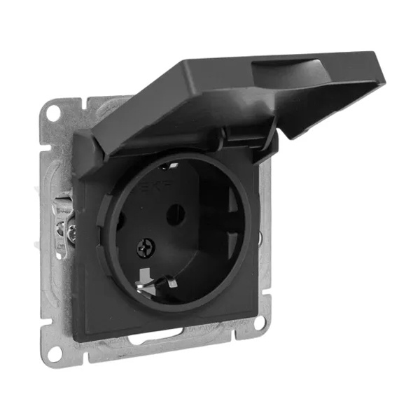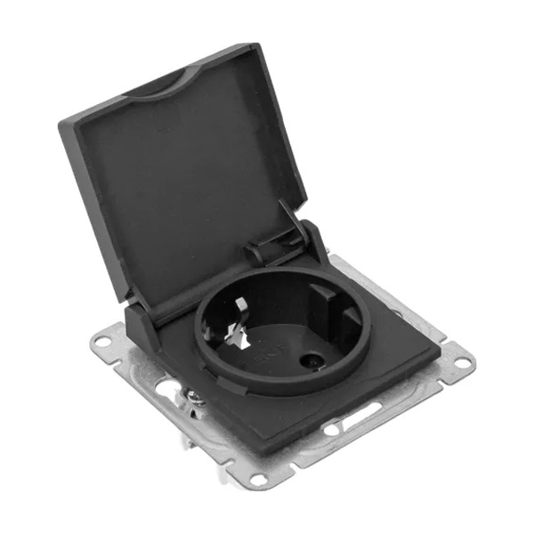 Электрическая розетка с защитным заземлением, шторками и откидной крышкой, скрытой установки черного цвета, винтовое подключение ЕКФ Эпика UP1-SOB-111-44
