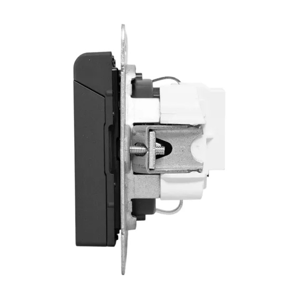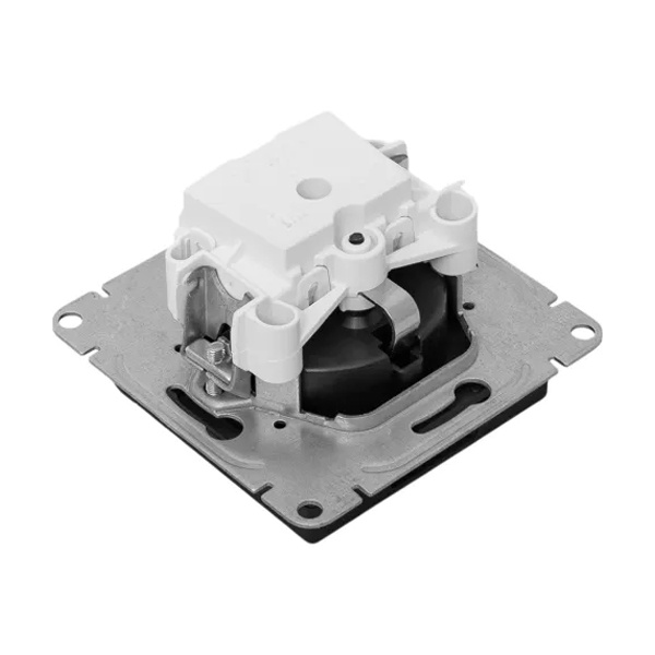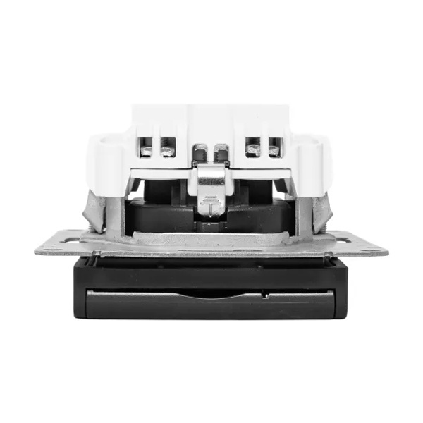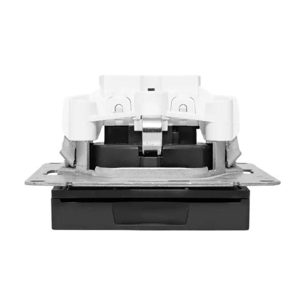 Универсальный механизм розетки совместим как с медной, так и с алюминиевой проводкой, обеспечивая надежное соединение и безопасную эксплуатацию.