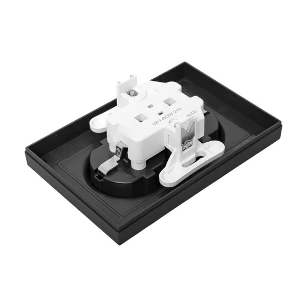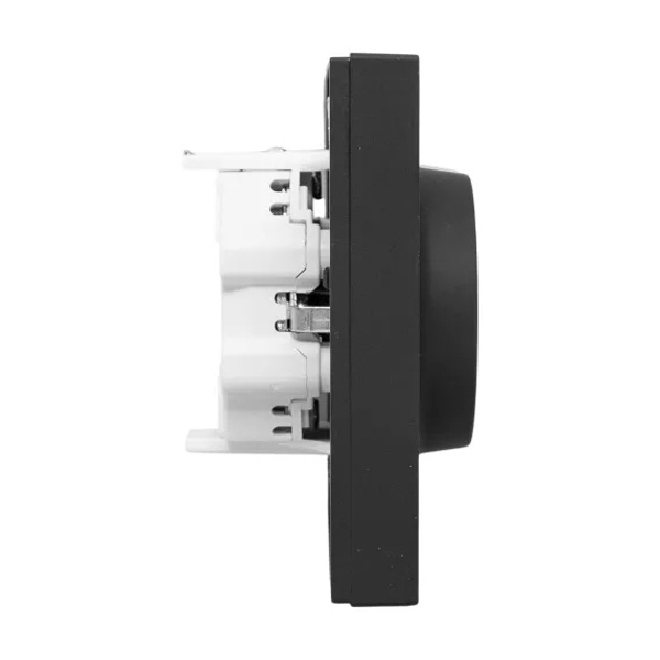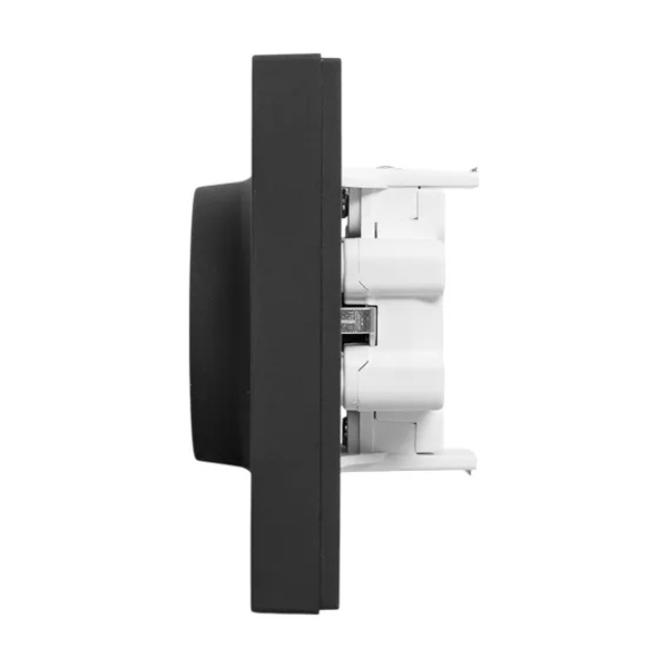 Розетка комплектуется декоративной рамкой в соответствующем цвете, что позволяет легко вписать её в интерьер помещения. Устройство полностью готово к установке и отличается простым, интуитивно понятным монтажом.