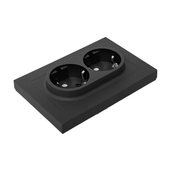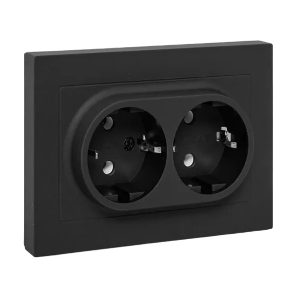 Электрическая двойная розетка с заземляющим контактом скрытой установки в одну монтажную коробку, черного цвета, винтовое подключение ЕКФ Эпика UP1-SOB-210