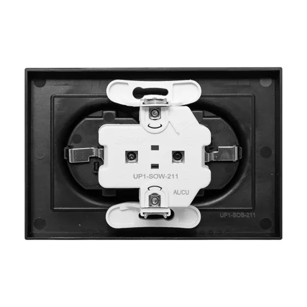 Универсальный механизм розетки совместим как с медной, так и с алюминиевой проводкой, обеспечивая надежное соединение и безопасную эксплуатацию.