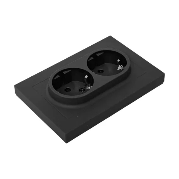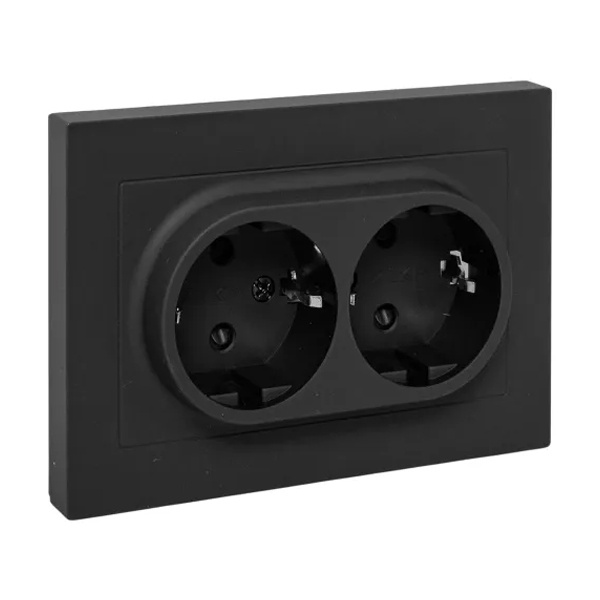 Электрическая двойная розетка с заземляющим контактом и шторками скрытой установки в одну монтажную коробку, черного цвета, винтовое подключение ЕКФ Эпика UP1-SOB-211