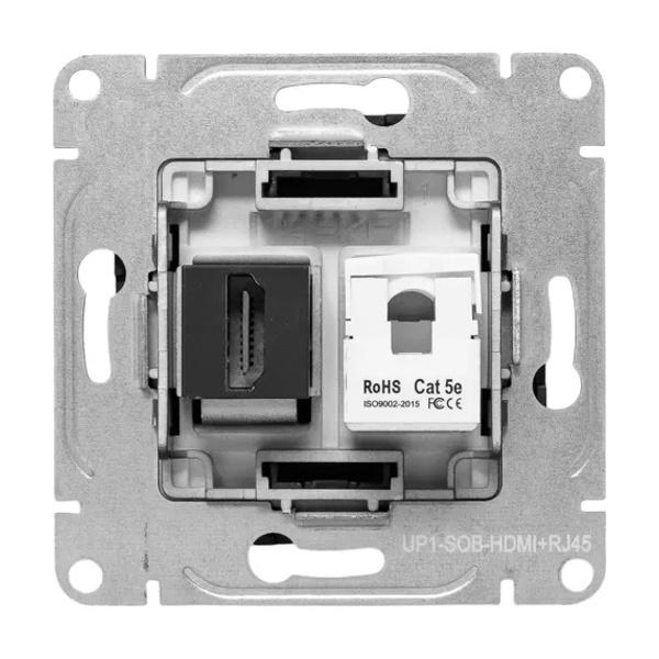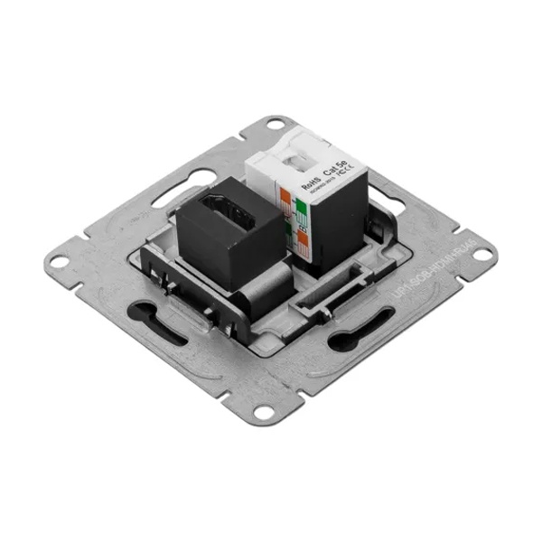 Комбинированная мультимедийная HDMI и информационная розетка RJ45 пятой категории скрытой установки черного цвета, Эпика UP1-SOB-HDMI+RJ45