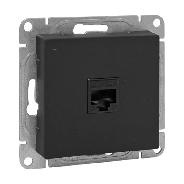 Телефонная одноместная розетка RJ11 скрытой установки черного цвета, Эпика UP1-SOB-RJ11