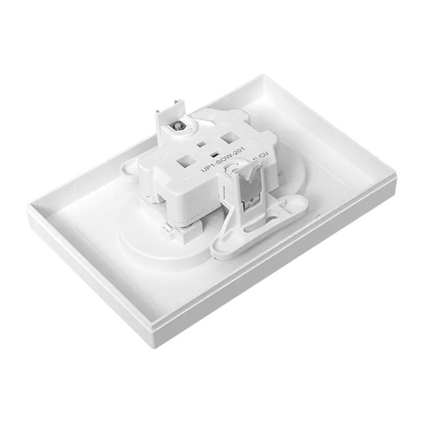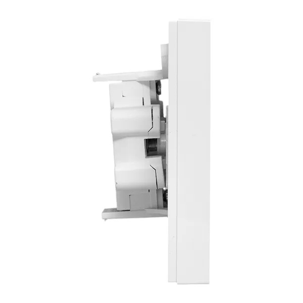 Розетка комплектуется декоративной рамкой в соответствующем цвете, что позволяет легко вписать её в интерьер помещения. Устройство полностью готово к установке и отличается простым, интуитивно понятным монтажом.