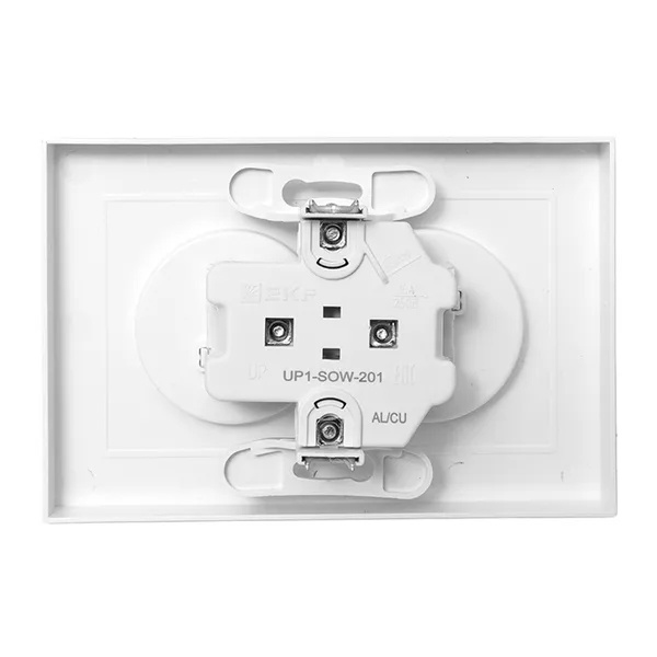Универсальный механизм розетки совместим как с медной, так и с алюминиевой проводкой, обеспечивая надежное соединение и безопасную эксплуатацию.