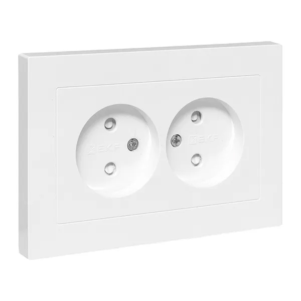 Электрическая двойная двухполюсная розетка, шторки, скрытой установки в одну монтажную коробку, белого цвета, винтовое подключение ЕКФ Эпика UP1-SOW-201