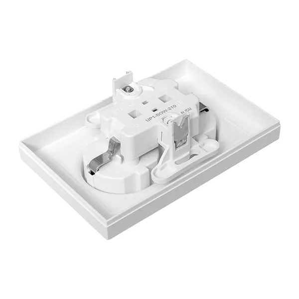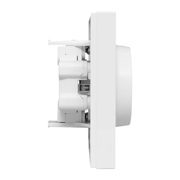 Розетка комплектуется декоративной рамкой в соответствующем цвете, что позволяет легко вписать её в интерьер помещения. Устройство полностью готово к установке и отличается простым, интуитивно понятным монтажом.