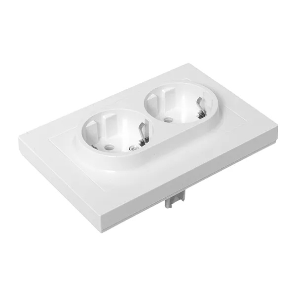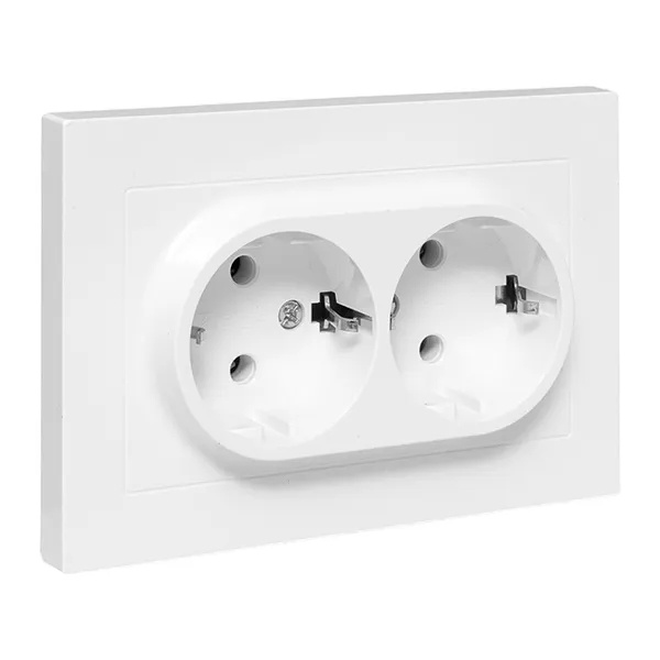 Электрическая двойная розетка с заземляющим контактом скрытой установки в одну монтажную коробку, белого цвета, винтовое подключение ЕКФ Эпика UP1-SOW-210