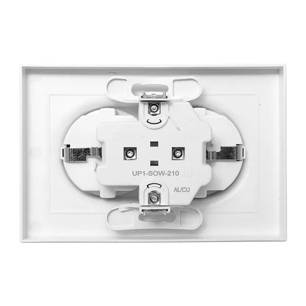 Универсальный механизм розетки совместим как с медной, так и с алюминиевой проводкой, обеспечивая надежное соединение и безопасную эксплуатацию.