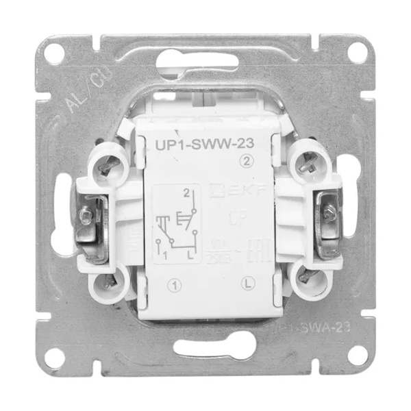 Универсальный механизм выключателя совместим как с медной, так и с алюминиевой проводкой, что делает его удобным для монтажа в любых типах жилых и коммерческих помещений.