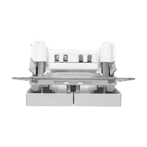 Универсальный механизм выключателя совместим как с медной, так и с алюминиевой проводкой, что делает его удобным для монтажа в любых типах жилых и коммерческих помещений.