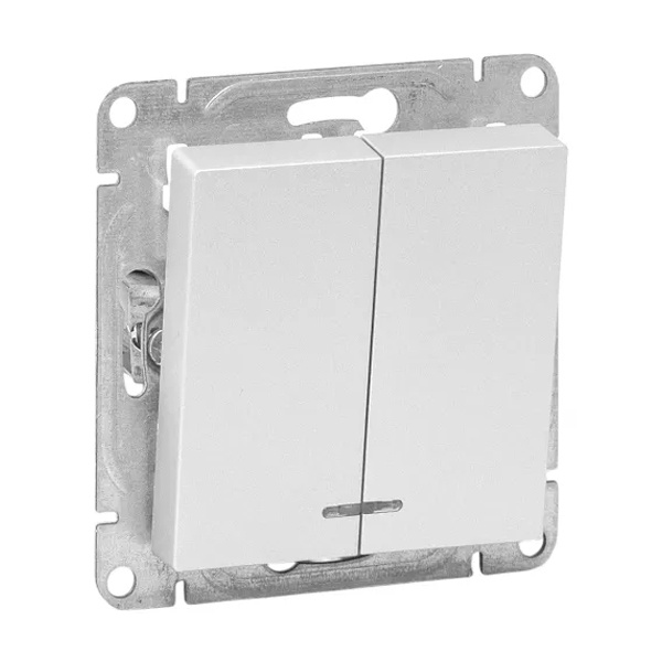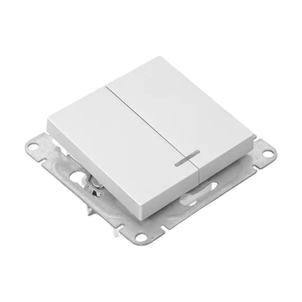 Механизм двухклавишного выключателя с индикацией для скрытой установки алюминиевого цвета, винтовое подключение ЕКФ Эпика UP1-SWA-24