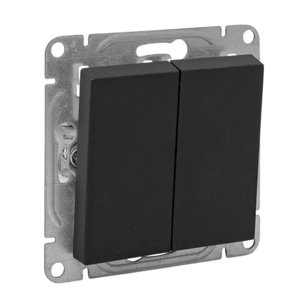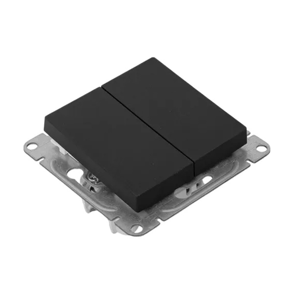 Двухклавишный самовозвратный выключатель скрытой установки черного цвета, винтовое подключение ЕКФ Эпика UP1-SWB-23