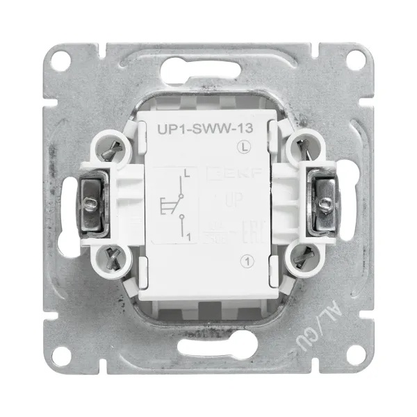 Одноклавишный самовозвратный выключатель скрытой установки белого цвета, винтовое подключение ЕКФ Эпика UP1-SWW-13