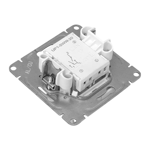 Универсальный механизм выключателя совместим как с медной, так и с алюминиевой проводкой, что делает его удобным для монтажа в любых типах жилых и коммерческих помещений.