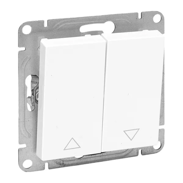 Двухклавишный самовозвратный выключатель скрытой установки белого цвета для управления жалюзи, винтовое подключение ЕКФ Эпика UP1-SWW-25