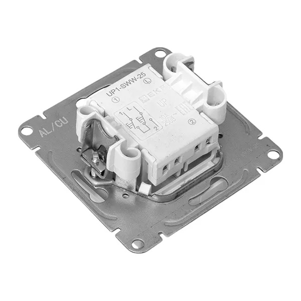 Универсальный механизм выключателя совместим как с медной, так и с алюминиевой проводкой, что делает его удобным для монтажа в любых типах жилых и коммерческих помещений.