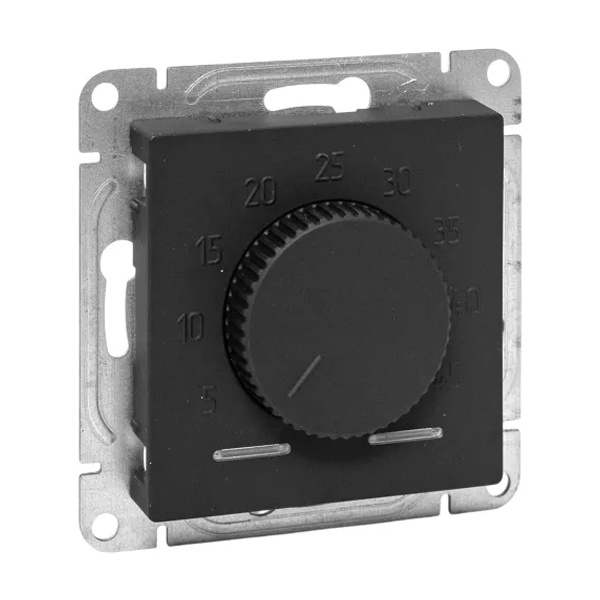 Комнатный регулятор температуры поворотный скрытой установки черного цвета, Эпика UP1-TBB-00