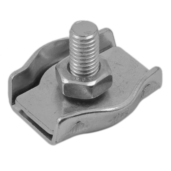 плоский одинарный или двойной зажим более надежен, чем скоба, в связи с большей площадью прилегания. Это две пластины, которые прижимаются друг другу с помощью болта и гайки. Двойной зажим для троса сочетает в себе два одинарных зажима;